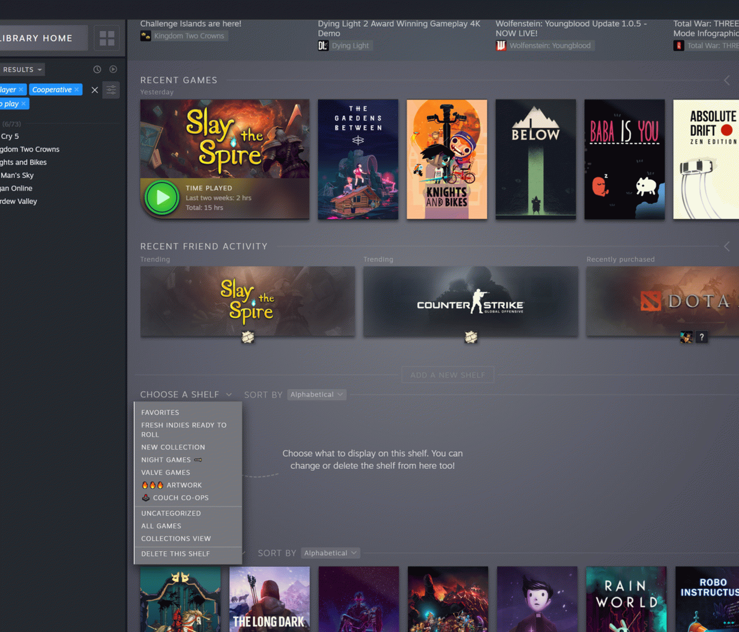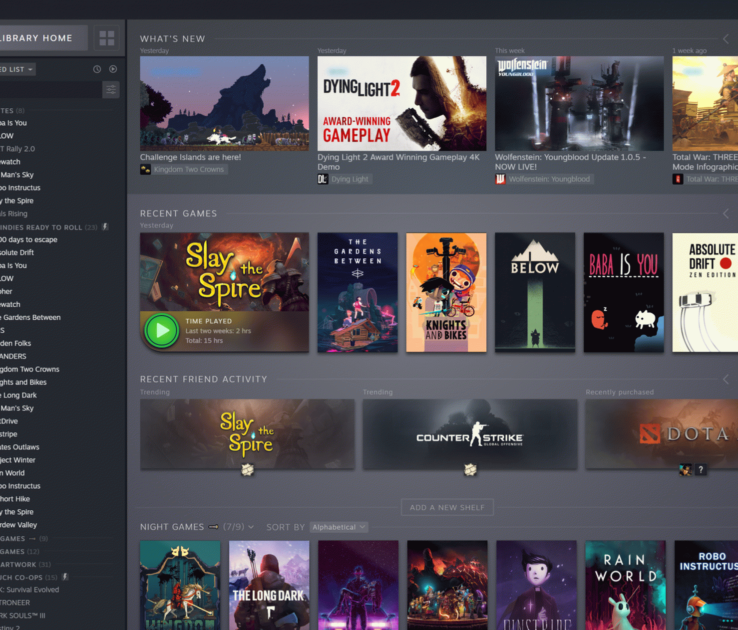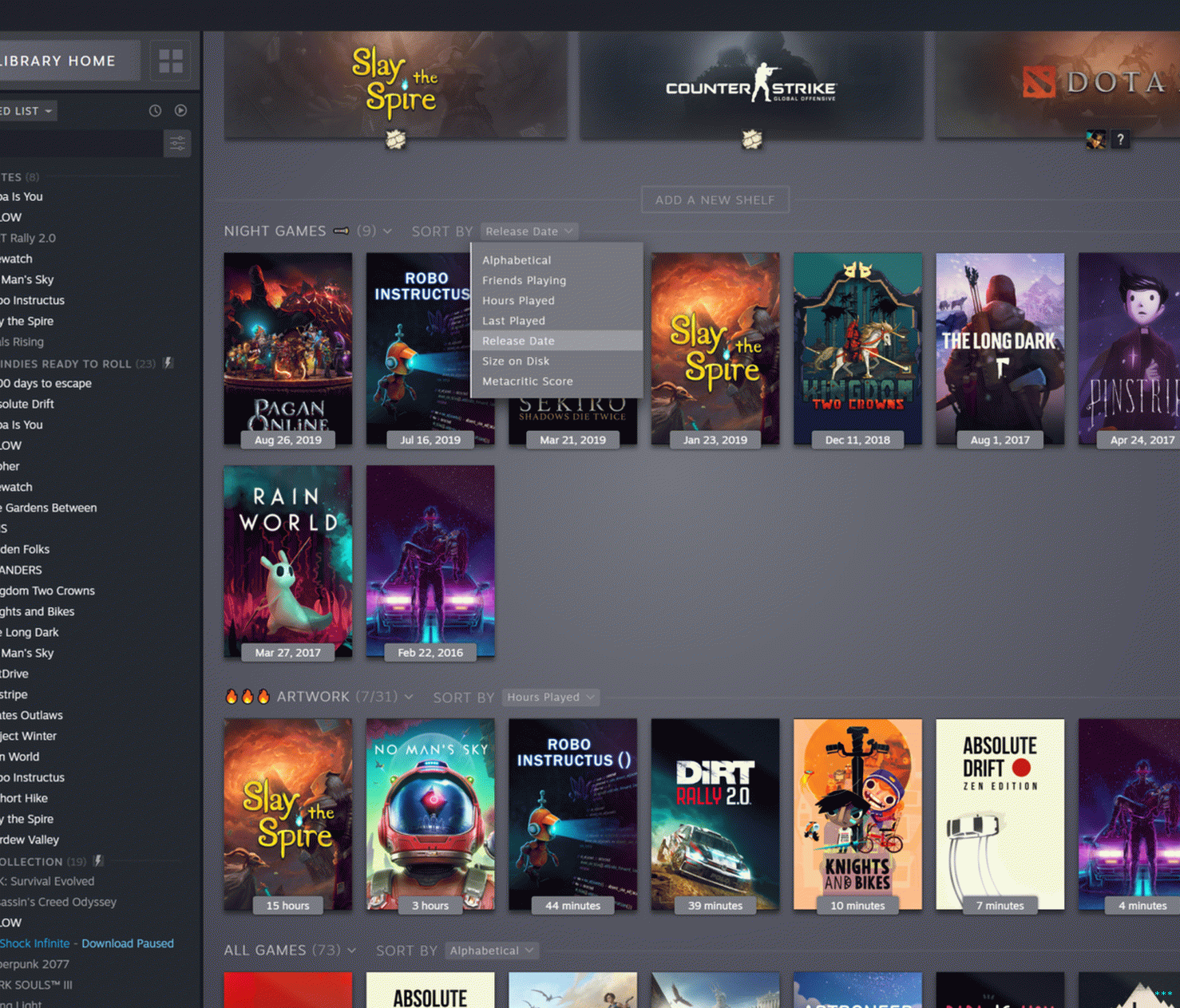 “Dynamic” niteliğini kaldırmayı ve basitçe Sürükle ve bırak oyunları organizasyonel bir rafa mı yerleştirildi? Doğru devam edin. Valve ayrıca yeni Steam Kütüphanesinin görselini doğruladı güzelleşmek “düşük performans” modunda devre dışı bırakılabilir.