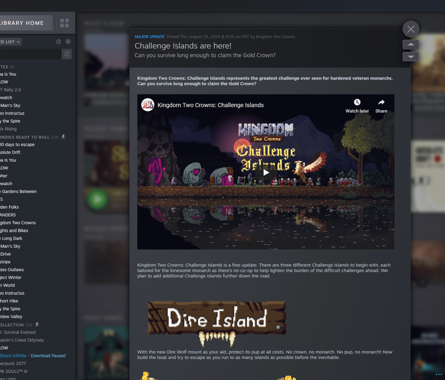 Yeni arayüzde, herhangi bir oyuna tıklayın, önceki Steam Kütüphanesinin salt metinlerinde büyük ölçüde tasarlanmış bir büküm RSS beslemesi. Oyun yapımcıları gösterişli inşa etme seçeneğine sahip olacak, Burada görüldüğü gibi zaman sınırlı olay afişleri.