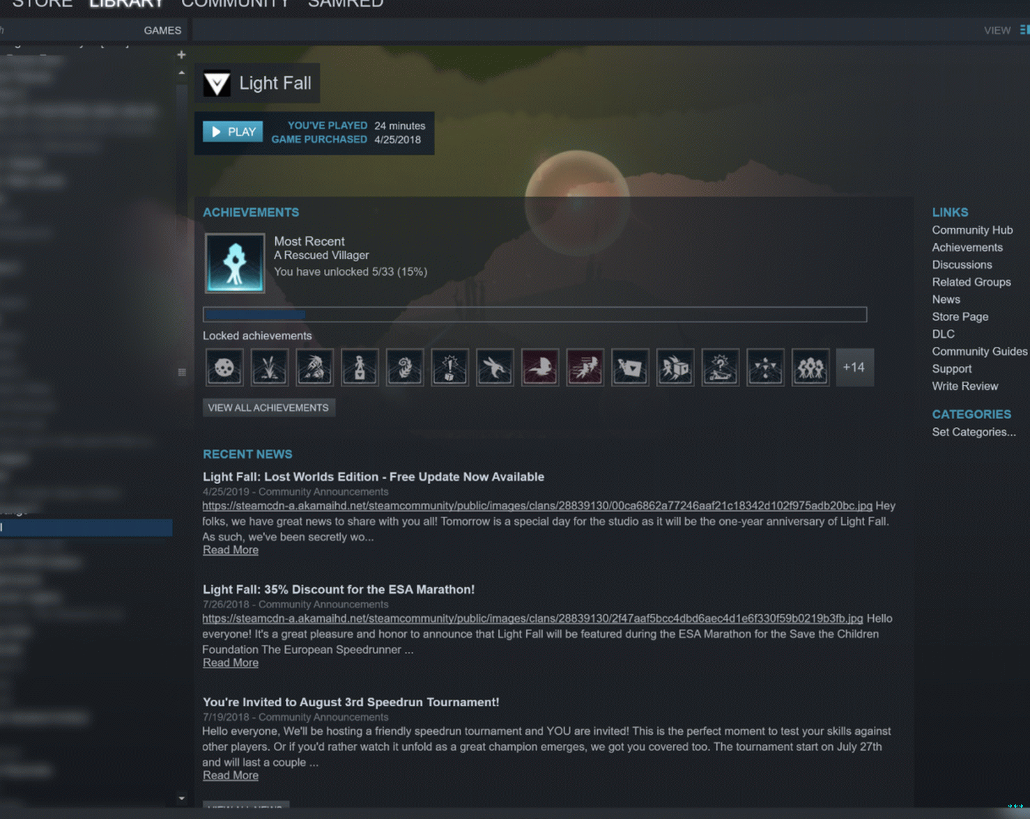 Hikaye büyük ölçüde yukarıdaki galeri tarafından anlatılmaktadır. Bir içerir mevcut Steam Kütüphanesi arayüzünün anlık görüntüsü ve Arayüzün yaklaşan değişiklikleri ile yüklendi. Çekirdek kavramı biraz sağlam kaldı. Sol taraftaki bir kenar çubuğu daraltılabilir oyun listeleri ve daha geniş, sağ bir arayüz ortaya çıkıyor belirli oyunlar hakkında bilgi.